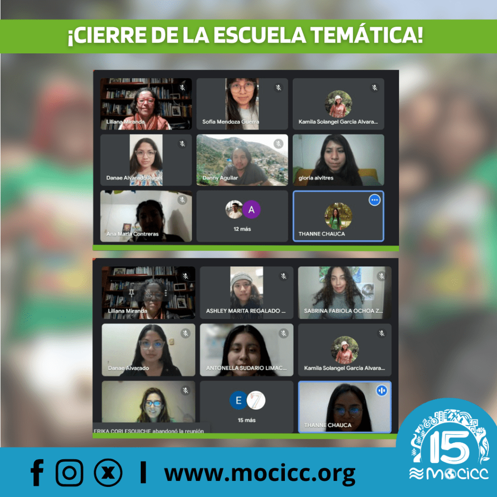 En octubre de 2024, se llevó a cabo la Escuela Temática Virtual organizada por MOCICC, con la participación de Liliana Miranda, Autora Líder del 6to Informe de Evaluación del Grupo 2 del IPCC sobre impactos, adaptación y vulnerabilidad, y Directora Ejecutiva del Foro Ciudades para la Vida.